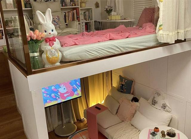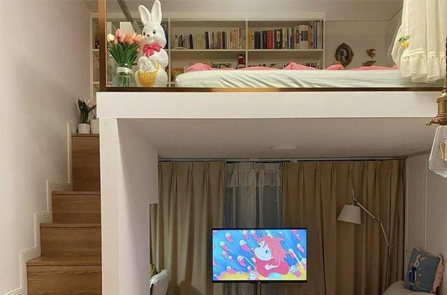 秘诀第一条:先抢天,再抢地。楼高三米,她干脆把空气也收租——客厅头顶架块轻钢楼板,1.3米高处塞下一张双人床垫,爬两步软梯就能上床;玄关上方再挖个洞,1.2米高处给老妈留榻榻米,放下蚊帐就是“长辈房”。两层加起来不到4㎡,却能把夜里睡觉、白天活动彻底分开,再也不用闻对方的脚臭味。