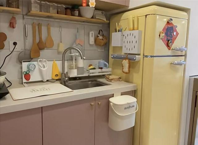 厨房更狠——直接“阉掉”明火。灶台拆光,只留两台2100W电磁炉+15L台式蒸烤箱,油烟飙不到300℃就冷凝,住五年,白瓷砖还是牛奶肌。冰箱缩成48cm宽,藏在踢脚线里,容量200L,比日本酒店还小,却能塞下一周食材:鸡蛋竖放、蔬菜立放、肉类真空,省出来的10厘米刚好让过道胖友也能侧身通过。